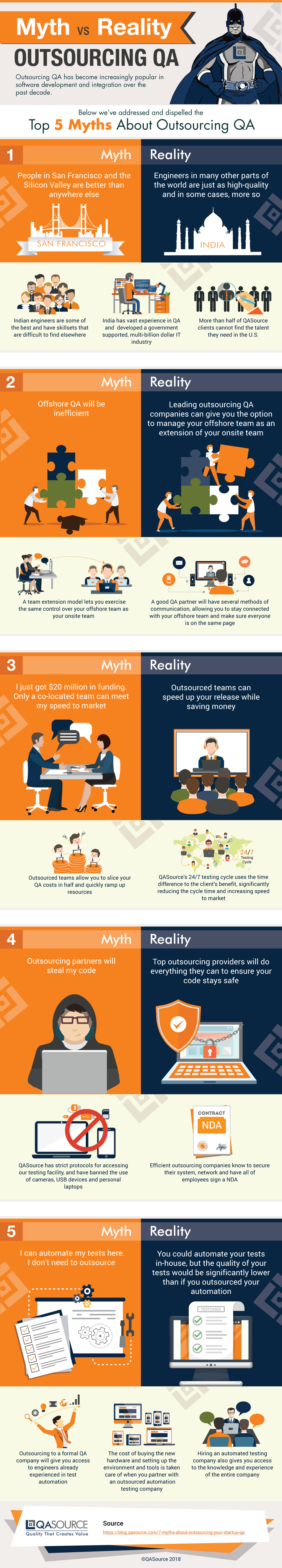 Over the last decade, QA outsourcing has surged in popularity in the software industry. Even so, there are some misunderstandings about its effectiveness. In our latest infographic, we've identified and dispelled the top 5 myths about outsourcing QA.